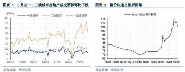 上周電力耗煤下跌,6大發(fā)電集團日均耗煤量51.82萬噸,環(huán)比減少9.8%。南華工業(yè)品指數(shù)收于1378.24,較上周下跌5.93%。上周五鋼價指數(shù)收于105.68點,環(huán)比下跌5.25%(圖表2)。上周螺紋鋼期貨價格環(huán)比下跌9.86%,粗鋼價格環(huán)比下跌10.442%。國產(chǎn)鐵礦石價格環(huán)比下跌0.18%;進口鐵礦石價格環(huán)比下跌3.65%。隨著監(jiān)管機構(gòu)加強對期貨市場的調(diào)控,螺紋鋼等期貨價格在節(jié)后大幅走低,帶動現(xiàn)貨鋼價也一并回落。隨著鋼價的快速上漲,鋼企4月盈利將繼續(xù)改善,預(yù)計復(fù)產(chǎn)進程將有所加快,但產(chǎn)能過剩并未根本上改觀,后續(xù)鋼價上行空間有限,企穩(wěn)還是大幅回落有待繼續(xù)觀察。