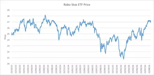 機器人 STOX 基金從 2013 年至 2016 年的價格走向