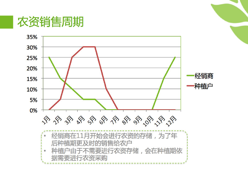 眾所周知,農(nóng)作物生長存在一定的周期,那么在其生長周期中對(duì)農(nóng)資的需要也是分階段,我們排除南北方差異,將全國農(nóng)資銷售周期整體來看,如下圖所示: